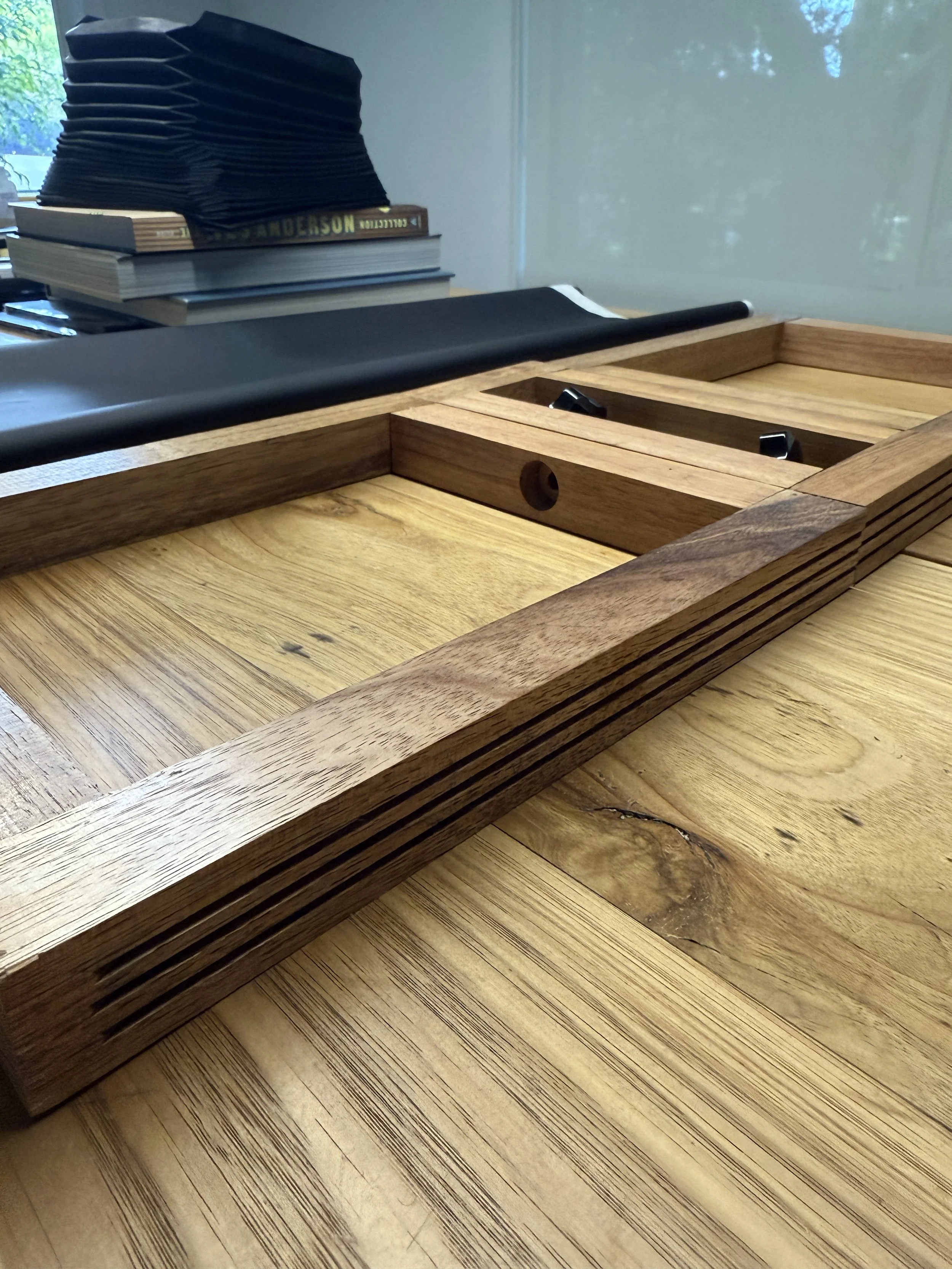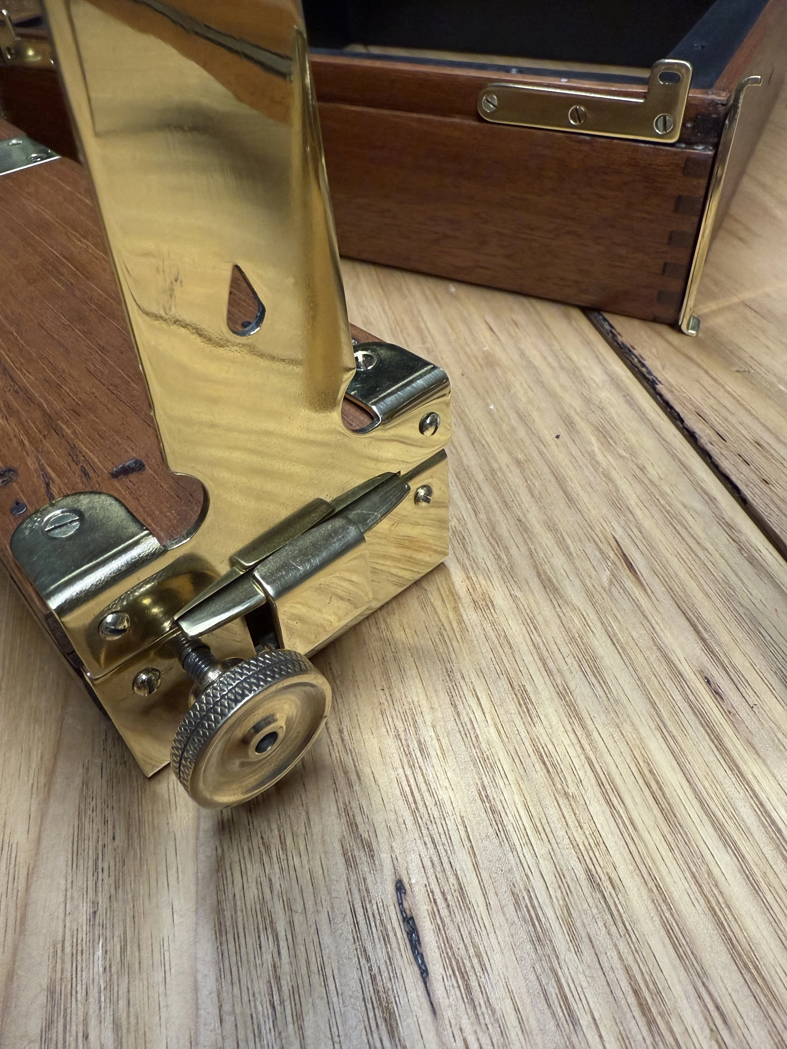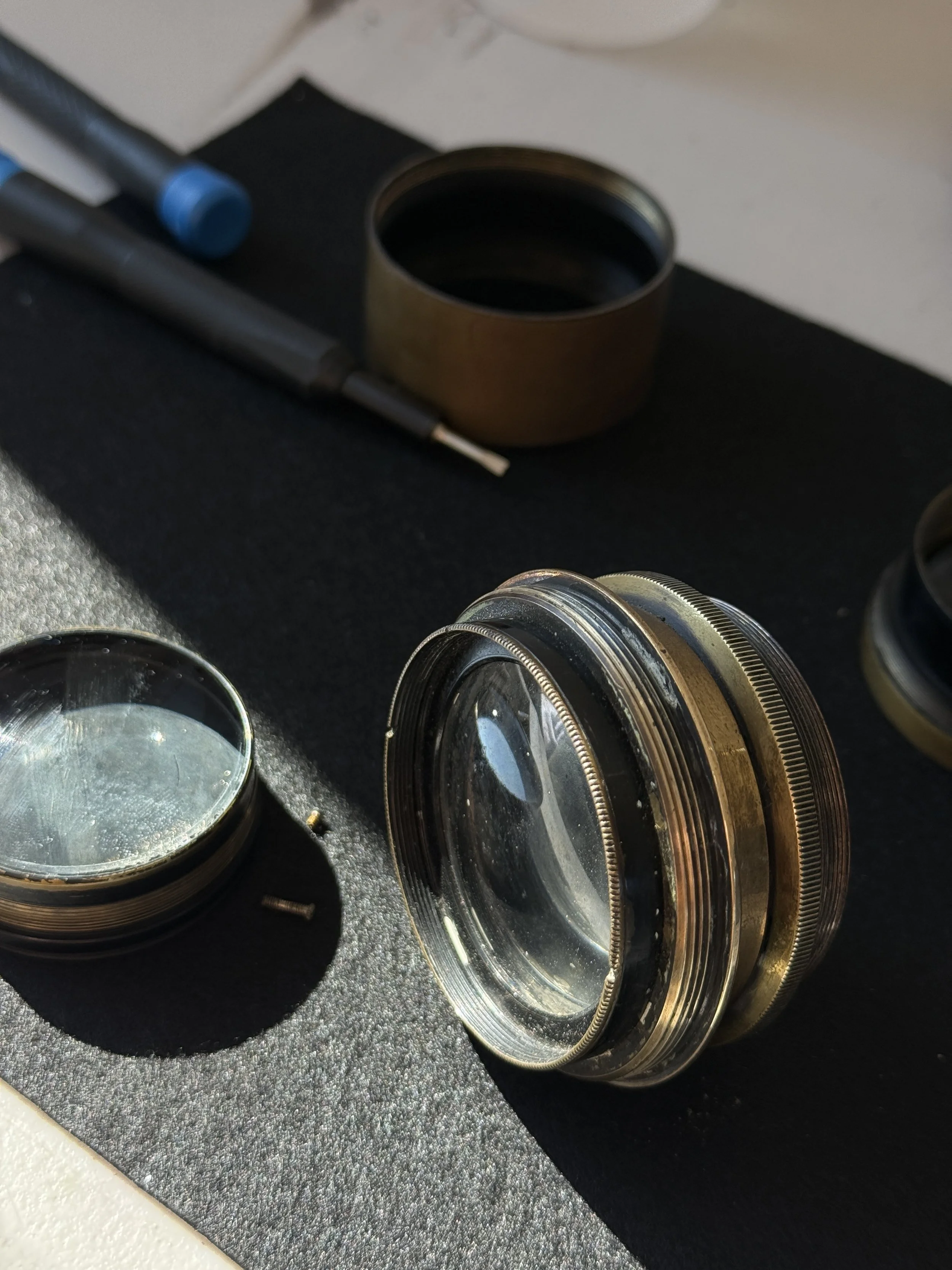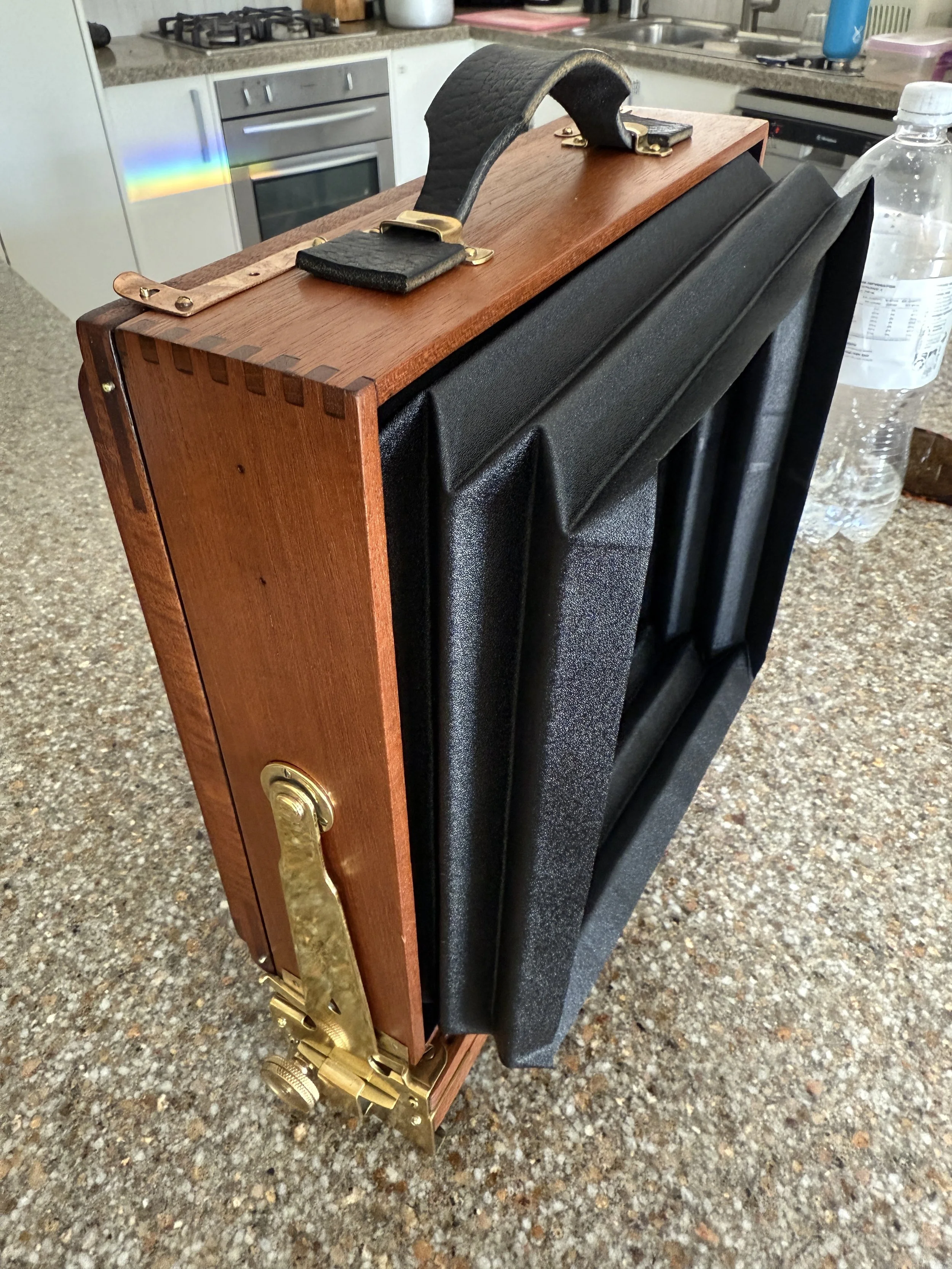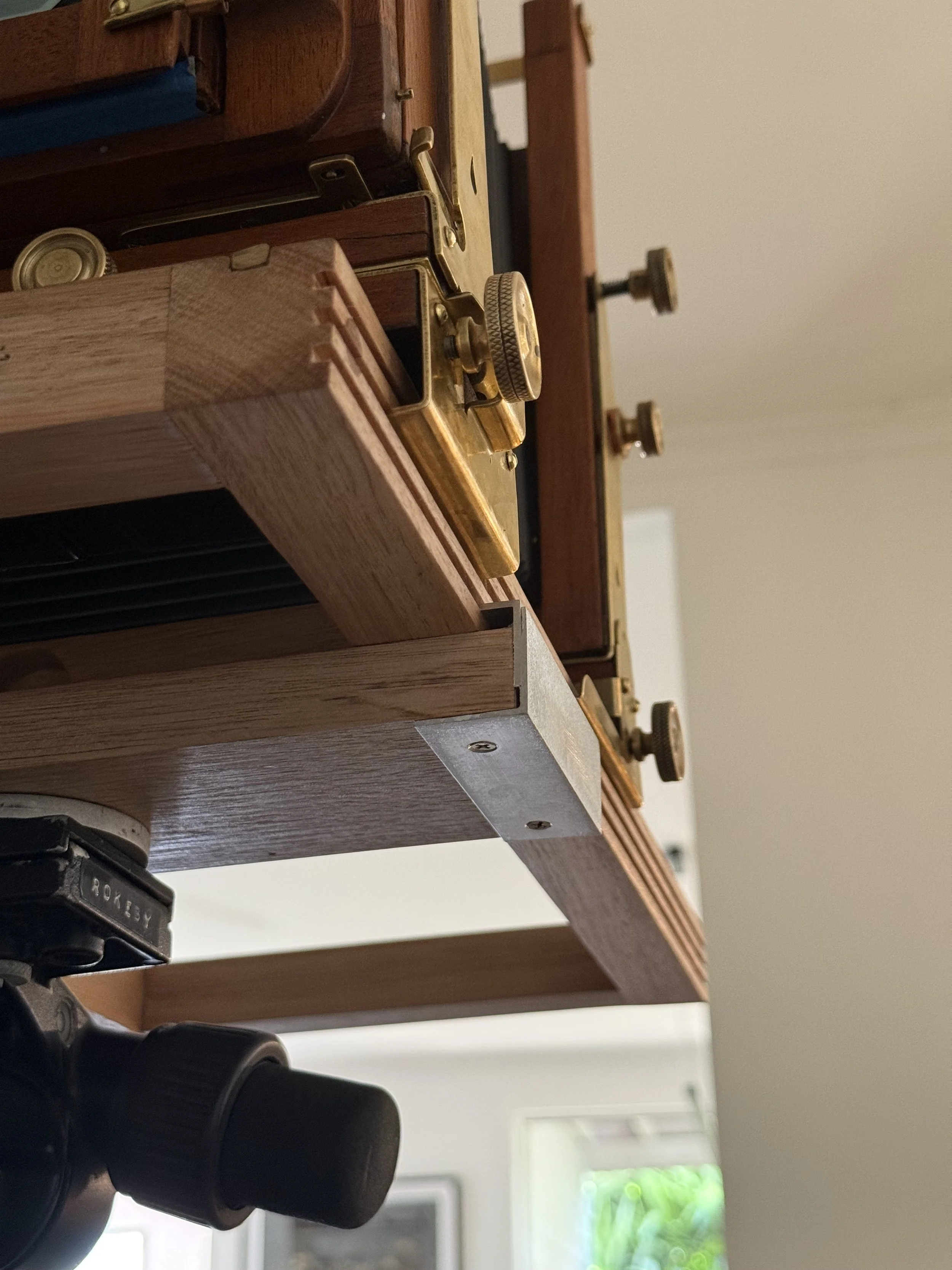 With no prior experience in restoration, I carefully documented every detail before dismantling it piece by piece. Brass fittings and screws were hand-polished, timber was sanded and waxed, and new rails were painstakingly rebuilt from Australian Blackwood. The rack was extended with the help of a 3D model designed by my son and printed by the team at Like Butter in Castlemaine. Recreating the bellows became a lesson in patience, precision, and respect for the ingenuity of the original makers. Even the ground glass and lens boards demanded trial, error, and invention.