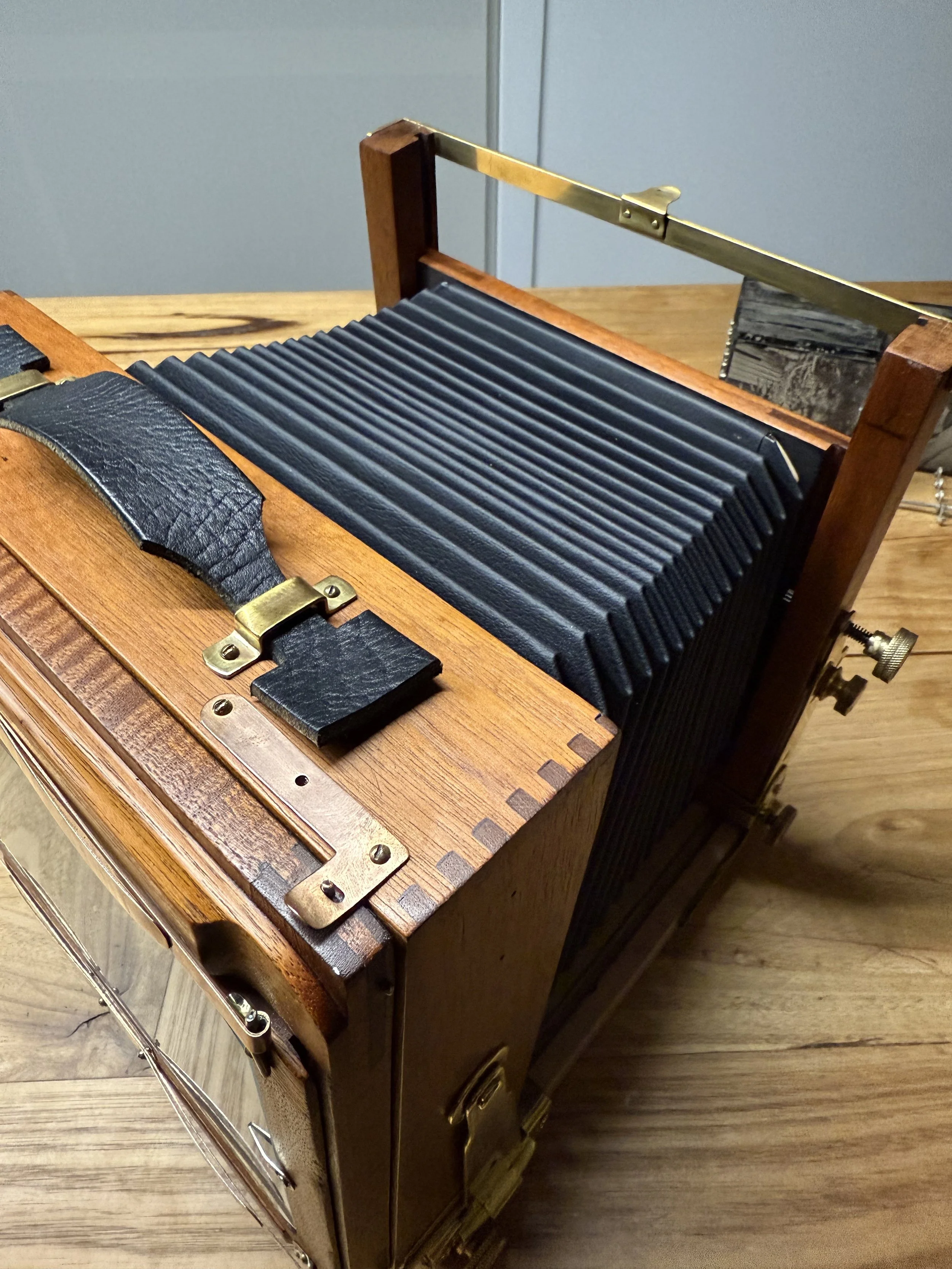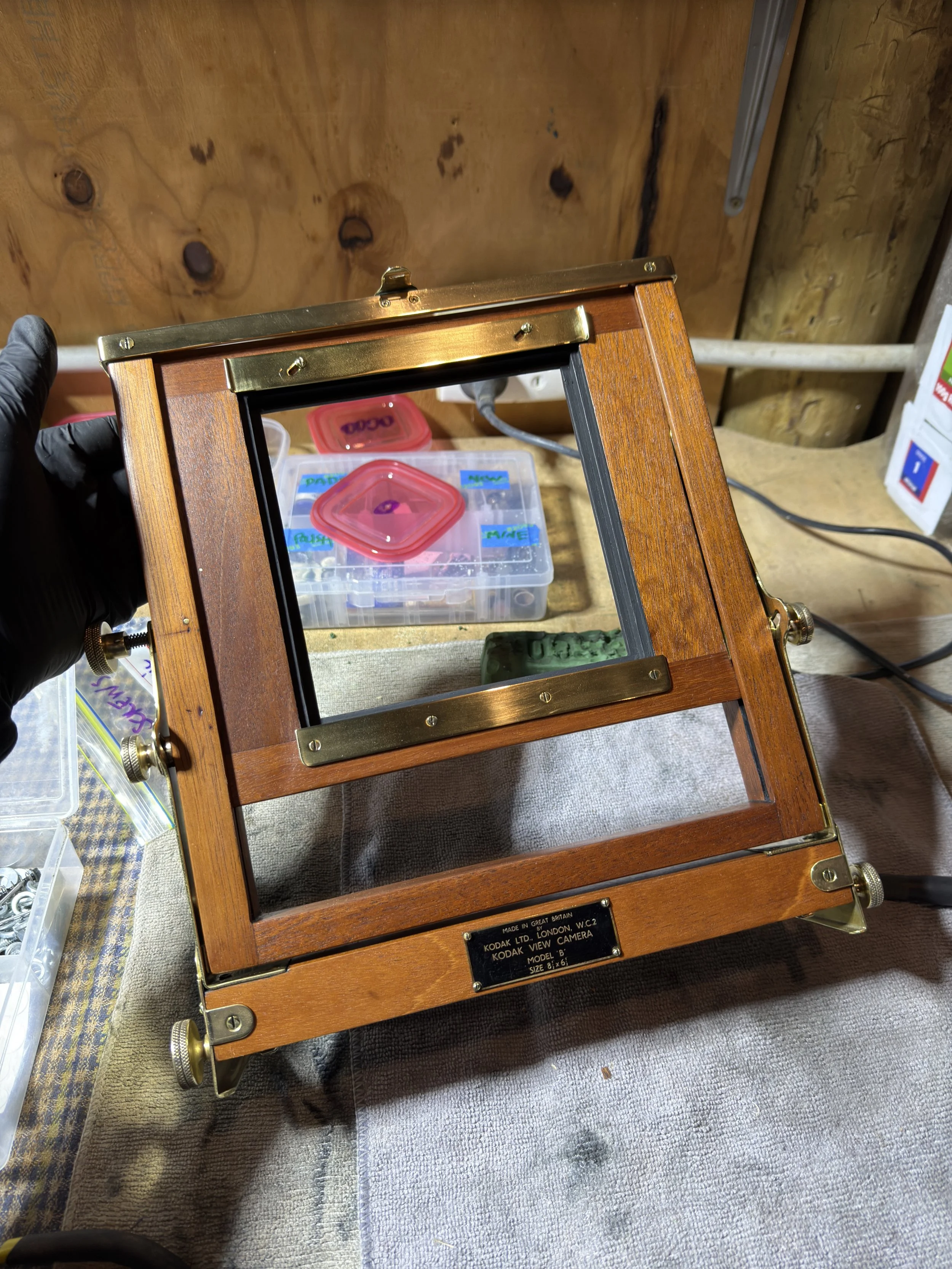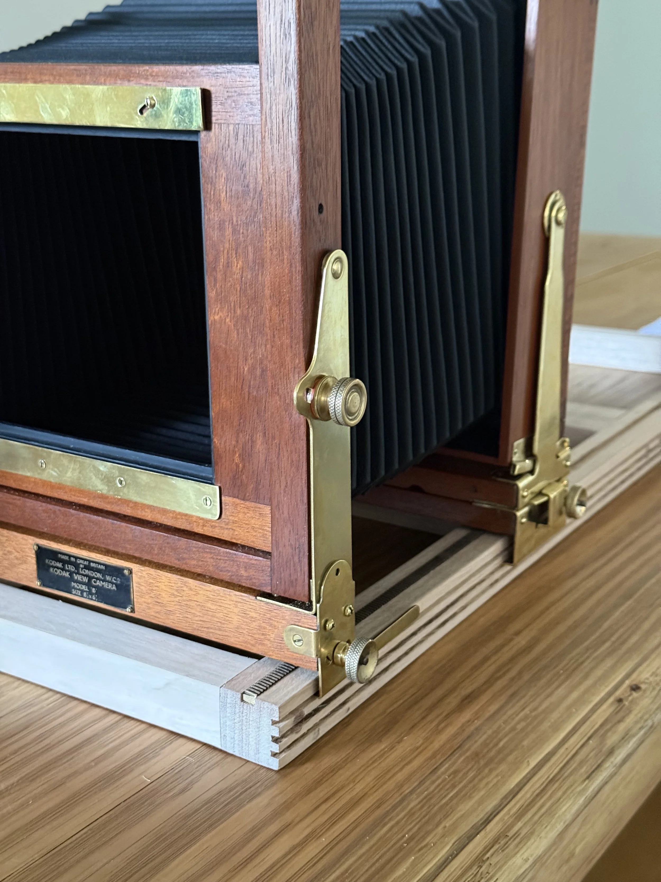 Around 1900, Kodak released the View Camera Model B in size 8.5 × 6.5"—a beautifully engineered instrument of its time. More than a century later, I stumbled across one on Marketplace: incomplete, tired, and scarred by age. It was missing critical parts—ground glass, rails, and its bellows were riddled with holes—but I saw the bones of something worth bringing back to life.