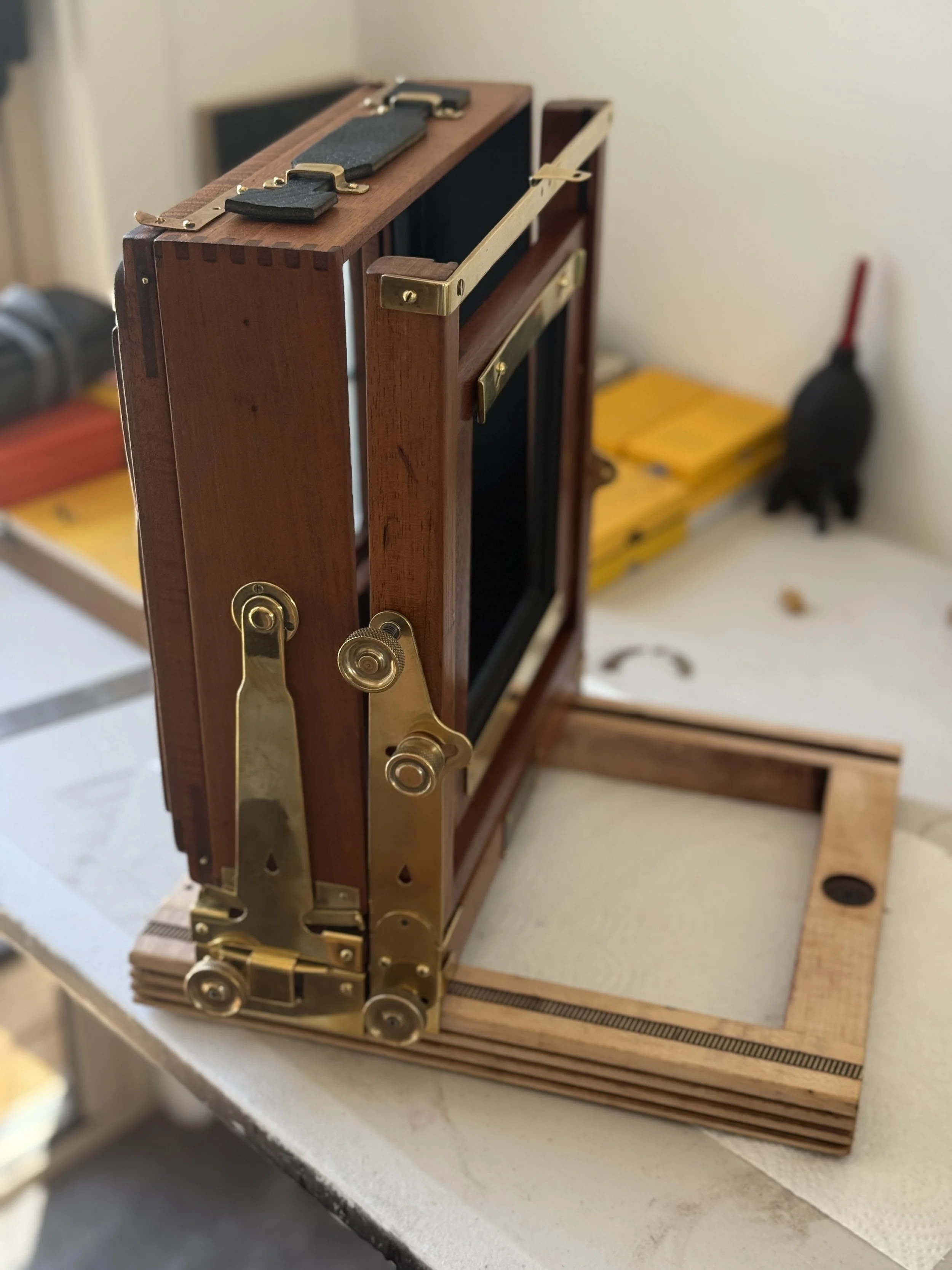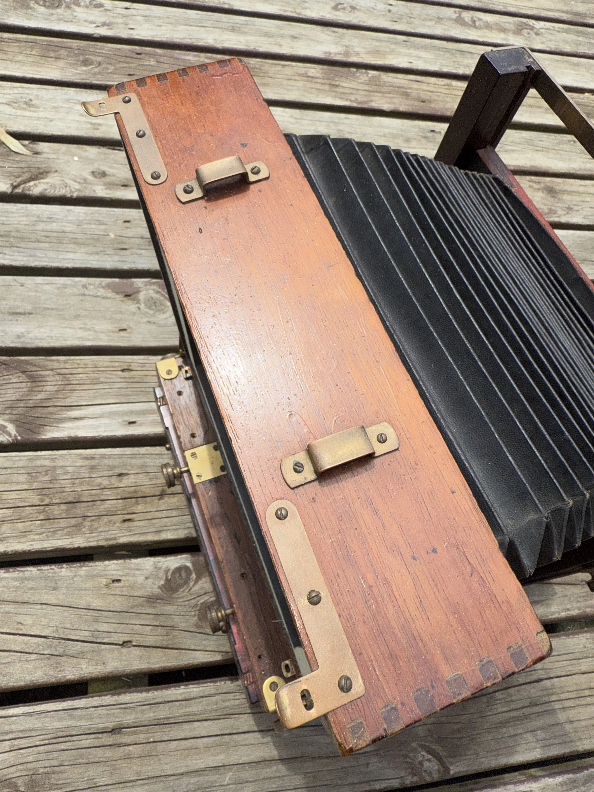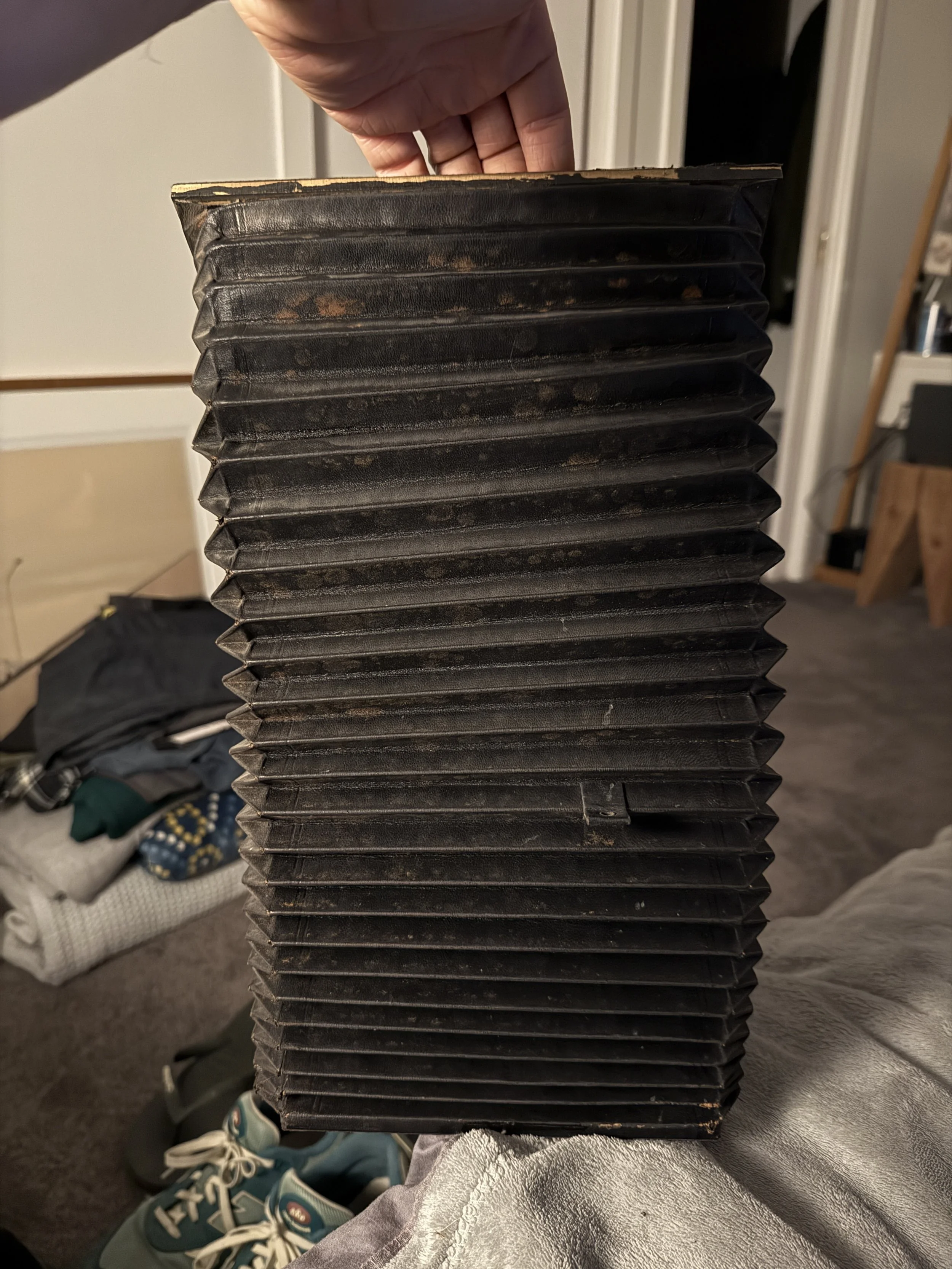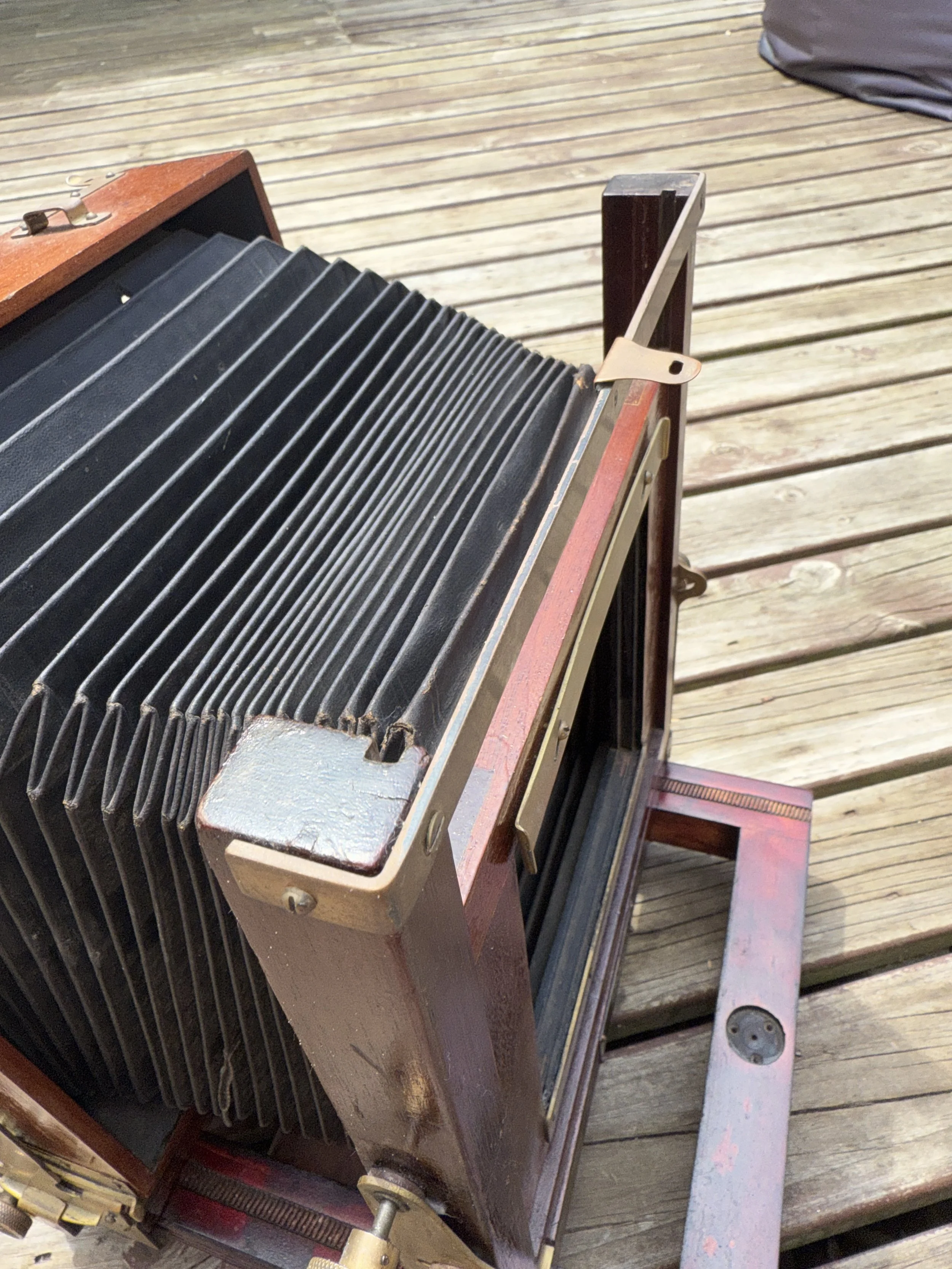 Around 1900, Kodak released the View Camera Model B in size 8.5 × 6.5"—a beautifully engineered instrument of its time. More than a century later, I stumbled across one on Marketplace: incomplete, tired, and scarred by age. It was missing critical parts—ground glass, rails, and its bellows were riddled with holes—but I saw the bones of something worth bringing back to life.